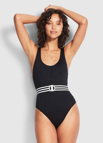 Elegantly crafted, this belted swimsuit seamlessly integrates with your cosmopolitan sense of style. In your confident stride along the palm lined beach, you’re influencing all the ladies around you with your sporty yet sophisticated flair