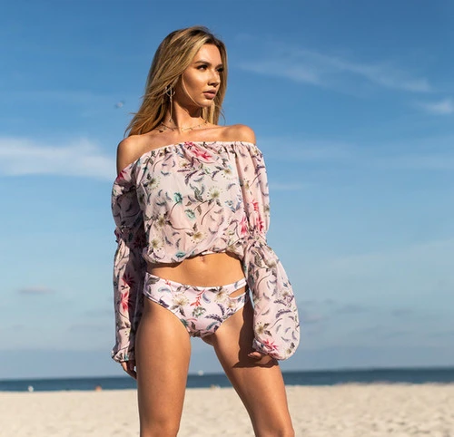 Boamar Sunshine Floral Off Shoulder Bikini Top & Beach Cover up