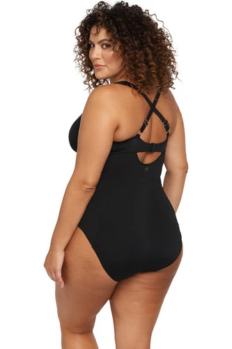 This sexy tankini proves that minimal doesn’t have to mean boring with its feminine structure and ruching. The quality and cut of this black plus size tankini are unmatched