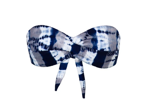 - blue bikini tie dye bandeau top has adjustable ties at the back to achieve the perfect fit