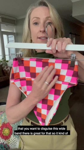 - middle seam has an elongating effect on the torso so these checkered bikini bottoms make you look taller. Plus, it also creates a clever disguise minimizing the look of a belly pooch