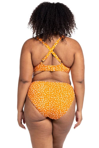 orange high waisted bikini bottoms are made with a glamorous cheetah print that is always on trend