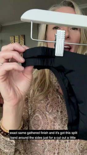 Gathered banded bottom lifts adds a beautiful designer esthetique