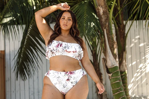 - plus size bandeau swim top has removable shoulder straps. Remove for a sweet strapless look and no tan lines