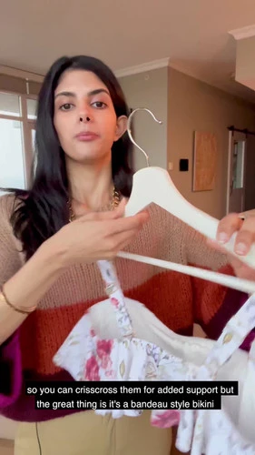This flounce swimsuit set combine ruffles and abstract flowers to make your dreams come true. It's why you look like a celebrity as you strut down the pool with your fabulous tan