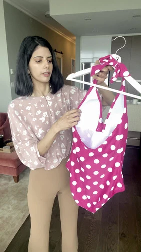 - doubles as a bodysuit which means you can wear this polka dot swimsuit anywhere – not just the beach