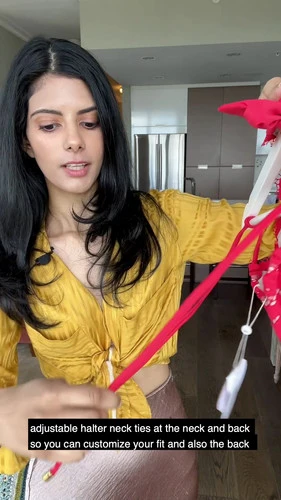 - adjustable sliding triangle bikini top ties at neck and back for a comfortable and customized fit
