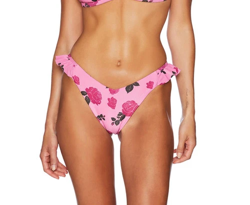 Brilliant, bold and beautiful pink roses printed on soft ribbed fabric make these bikini bottoms the perfect choice. Looking for romance? Easily catch everyone's attention as you stroll confidently by the beach bar