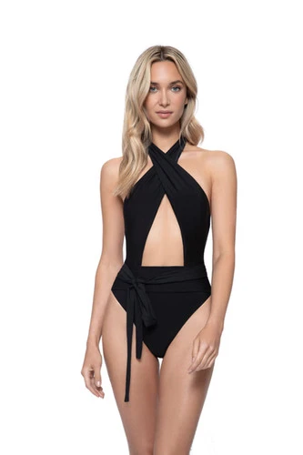 Sexy and sleek, you’ll look like you just stepped out of a James Bond movie wearing this swimsuit. A black swimsuit with a figure-flattering cut-out is bound to create a head-turning statement. Designed with a signature wrap silhouette, this sexy swimsuit will make you stand out even at the most luxurious pool parties.