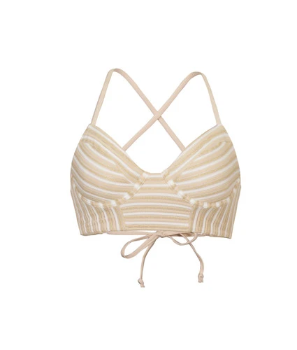 Made from a blend of shimmering gold and neutral stripes. This standout bikini top features a structured bralette silhouette with a ribbed finish. It shines with just the right amount of sparkle so you look a class above
