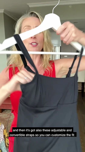 - short swim dress has adjustable and convertible shoulder straps so you can decide the level of support. Crisscross the straps at the back for added security and comfort